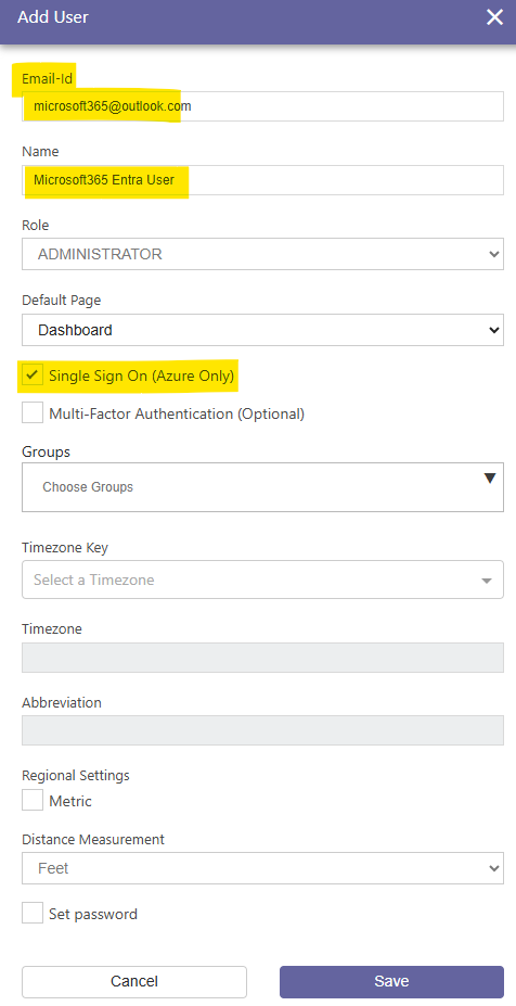 - CRITICAL: Do not set a password for SSO users. This prevents them from gaining direct access to the BeWhere portal outside of the required Azure SSO mechanism.